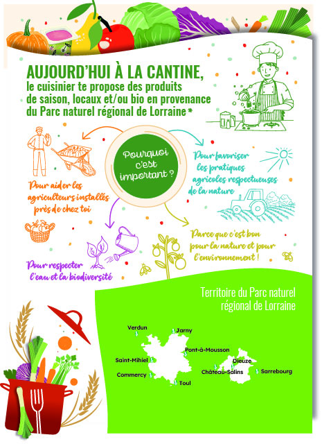 Le 9 avril 2026, le Parc naturel régional de Lorraine propose aux services de restauration scolaire des collèges du département de la Meuse un menu élaboré à partir de produits bio, locaux et de saison, dont la majorité provient du territoire du Parc.