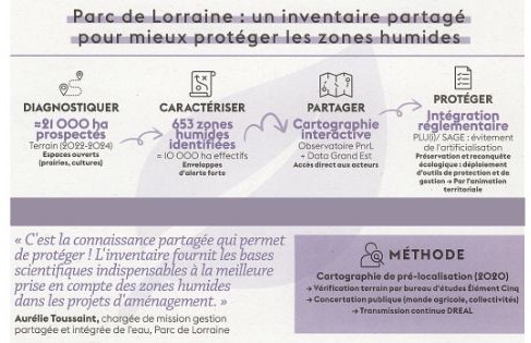 En 2020, le Parc a élaboré en interne une cartographie de prélocalisation des zones humides potentielles, qui a servi de base pour la vérification sur le terrain, confiée au bureau d’études Élément Cinq. Après une information large auprès des partenaires, dont le monde agricole, environ 20 000 ha ont été diagnostiqués entre 2022 et 2024, permettant de décrire 653 zones humides effectives.